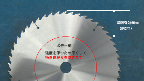 刃厚が薄いチップソーの場合は台厚も薄くなるために引き曲りが起きやすくなりますが本商品は